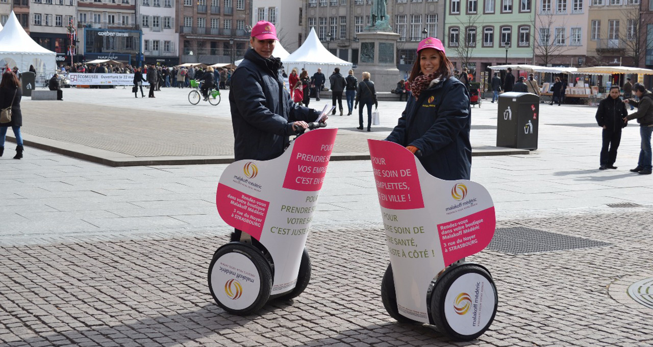 Circulant à la vitesse du pas sur les trottoirs et les voies piétonnes, LE SEGWAY vous ouvrent de nouvelles opportunités pour toucher votre public dans ses lieux de vie : cœur de ville, galeries marchandes, salons, meknestival, bords de plage …